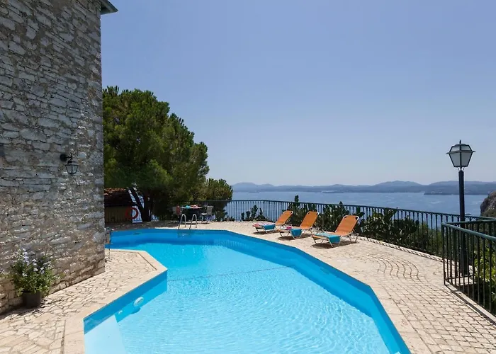 Villa Lithari, Nissaki, Corfu dysponuje tarasem z widokiem na górę, 28 min jazdy od lotniska Korfu. Willa oferuje basen, a także wędrówki piesze dla aktywnych Gości.